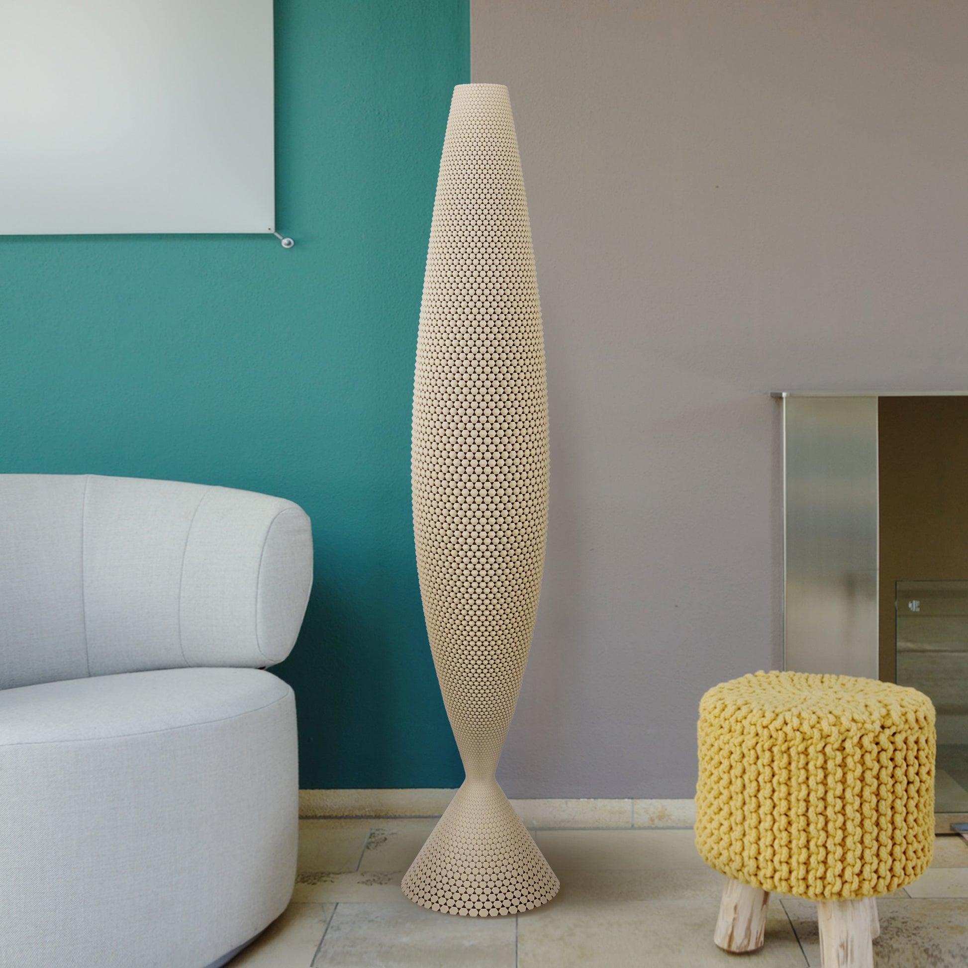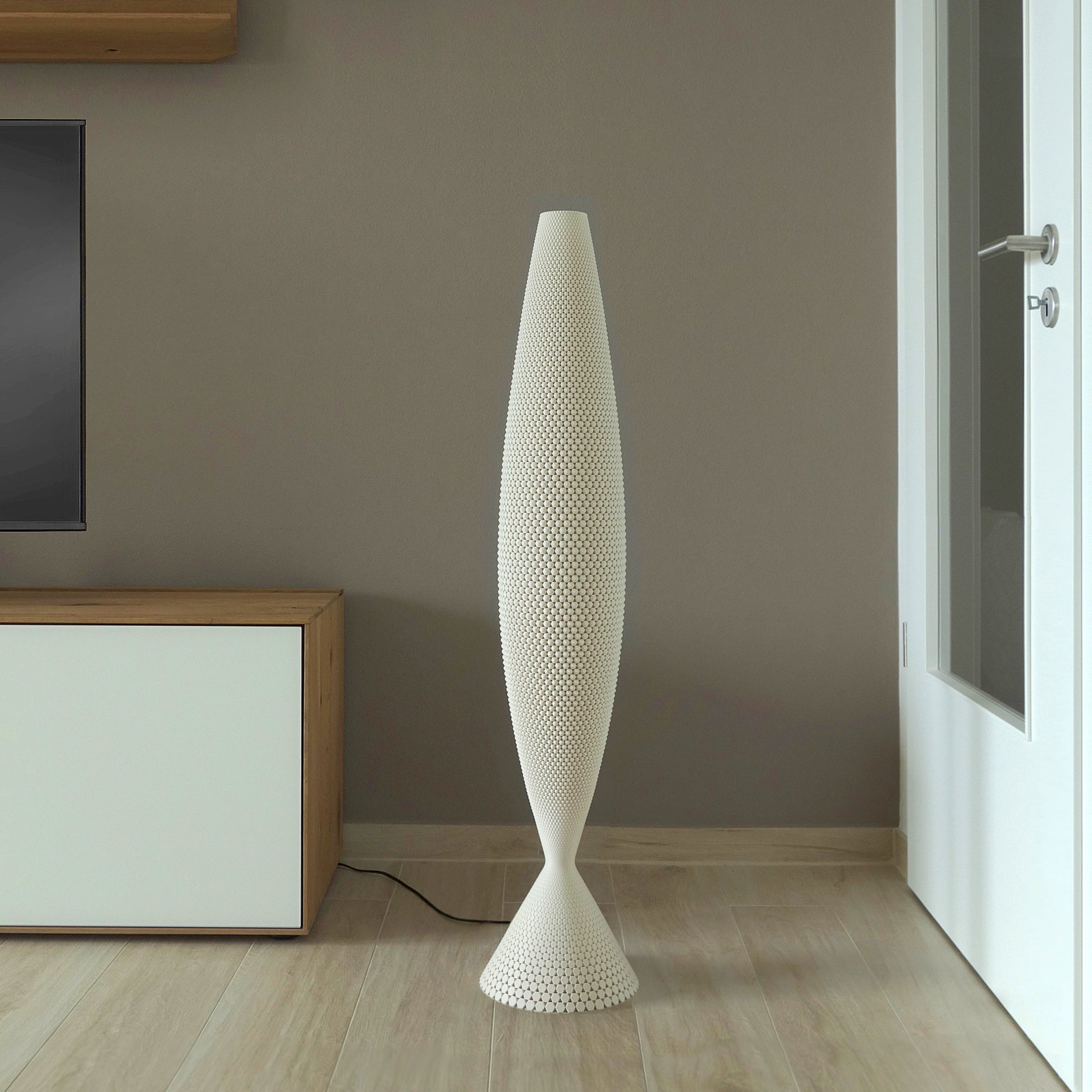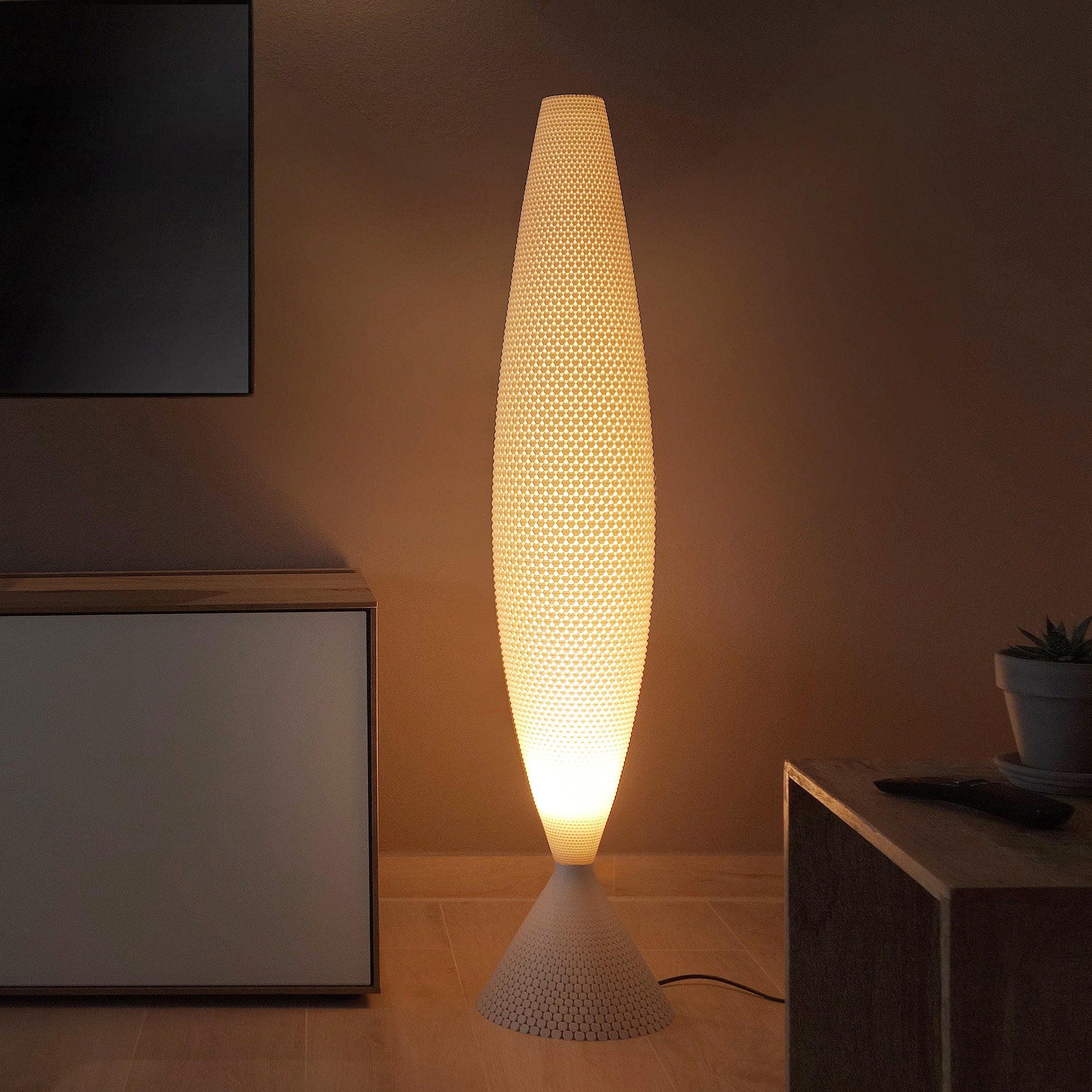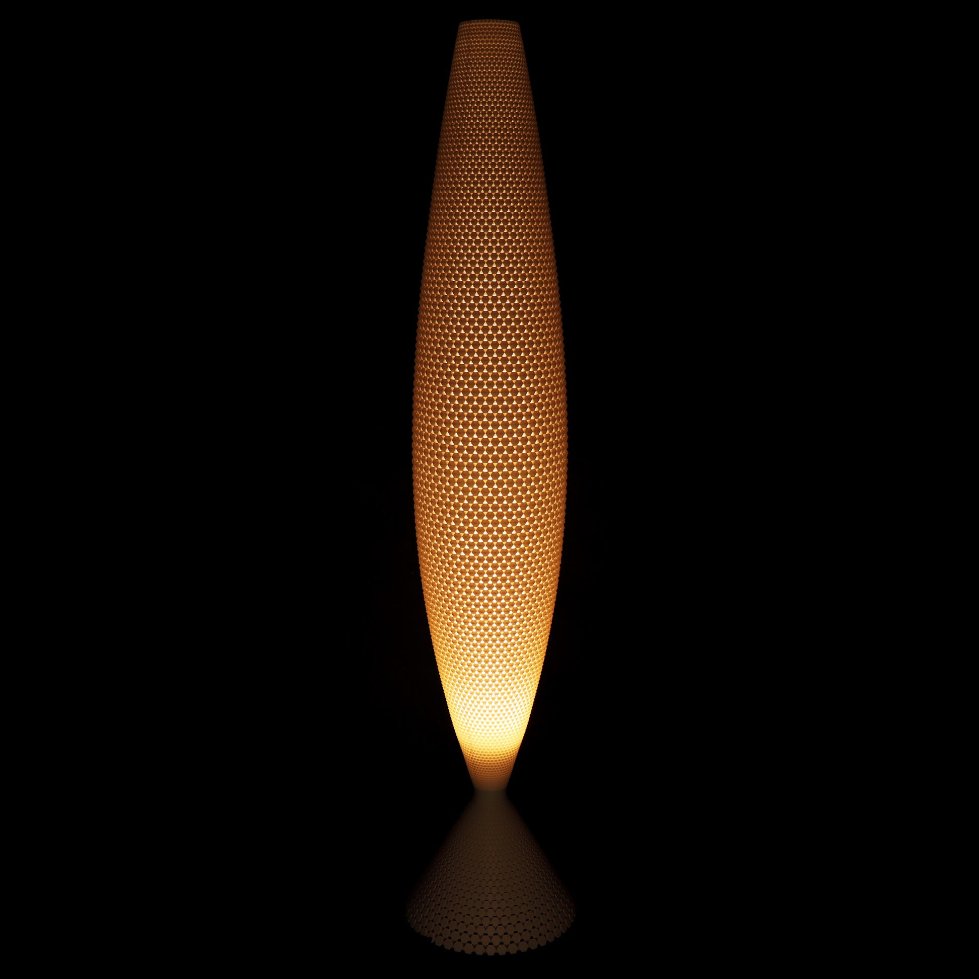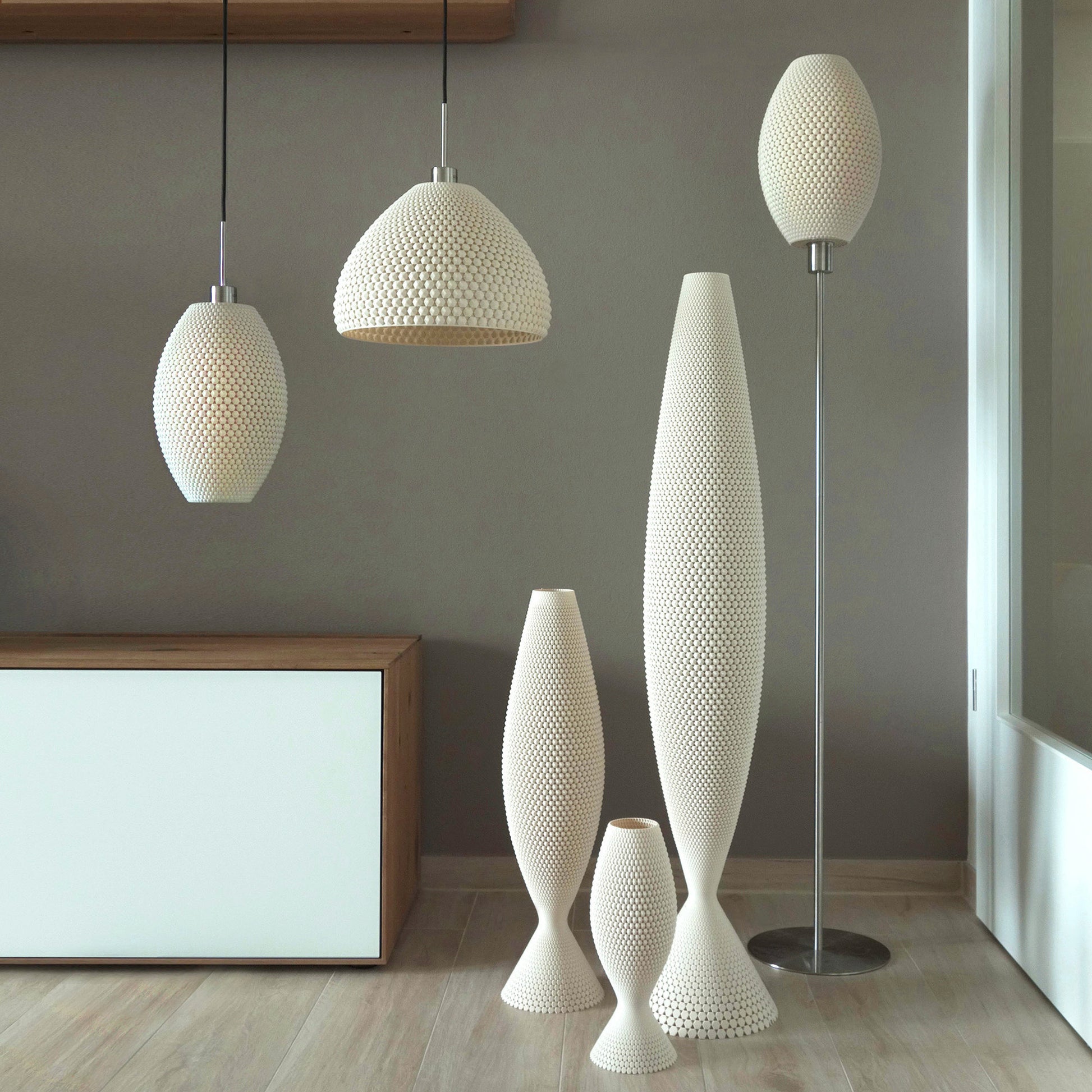 Mit modernen 3D-Druckern wird der Lampenschirm der Designleuchte unter Verwendung eines biobasierten Rohstoffes frei von Erdöl und toxischen Bestandteilen hergestellt. Das innovative Design von smartlamps beinhaltet eine besondere kristalline 3D-Struktur und erschafft eindrucksvolle Licht- und Schattenspiele beim Einschalten des Lichts. Es wird die Verwendung von LED-Strahlern empfohlen für beste Lichtwirkung.