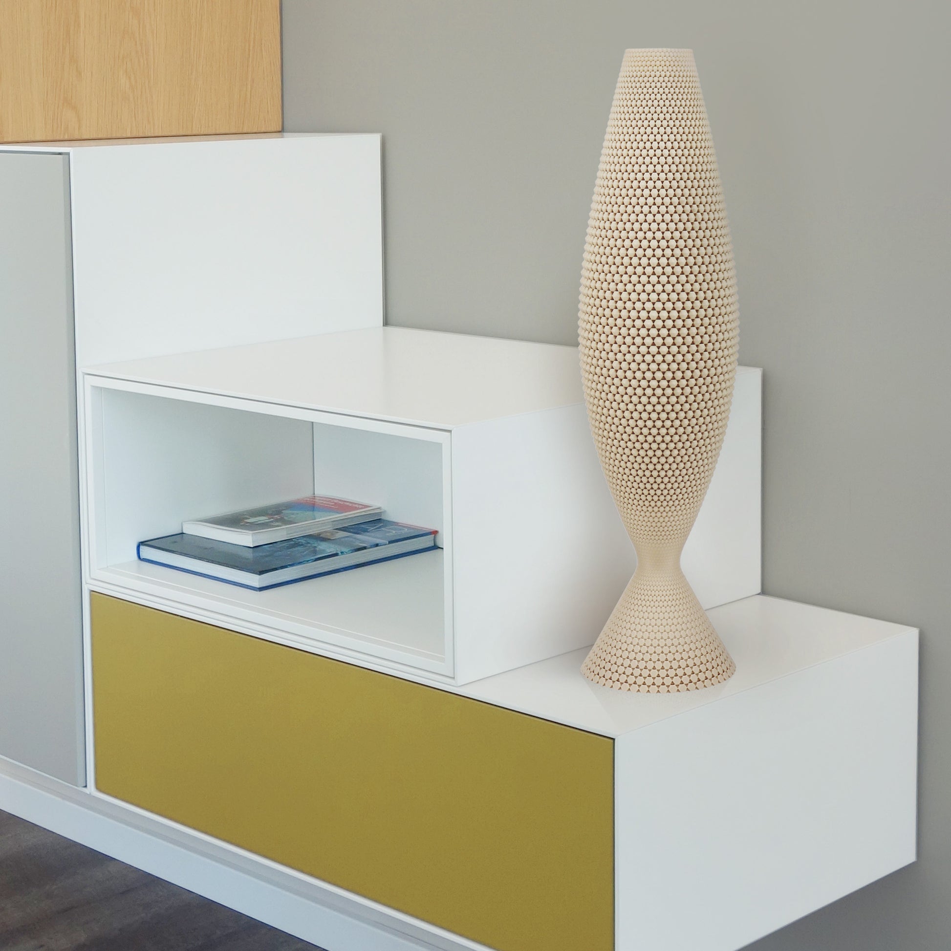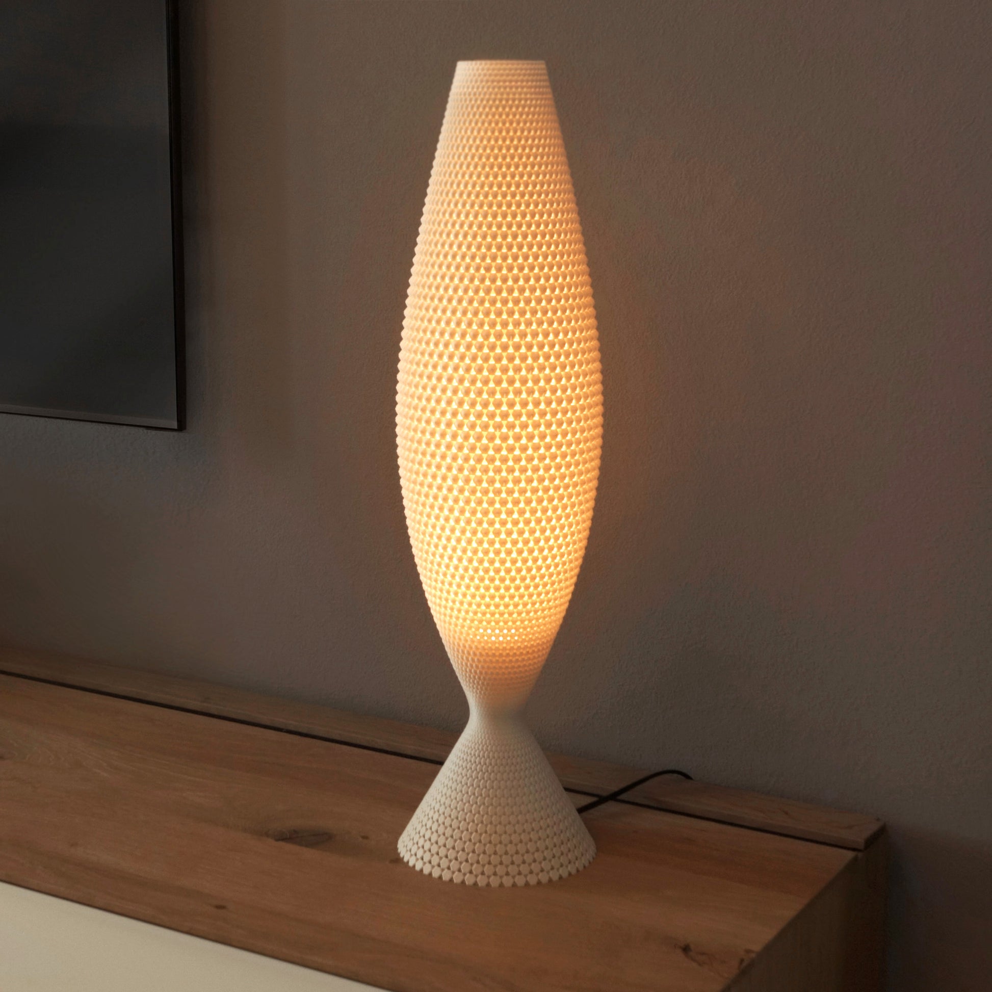 Mit modernen 3D-Druckern wird der Lampenschirm der Designleuchte unter Verwendung eines biobasierten Rohstoffes frei von Erdöl und toxischen Bestandteilen hergestellt. Das innovative Design von smartlamps beinhaltet eine besondere kristalline 3D-Struktur und erschafft eindrucksvolle Licht- und Schattenspiele beim Einschalten des Lichts. Es wird die Verwendung von LED-Strahlern empfohlen für beste Lichtwirkung.