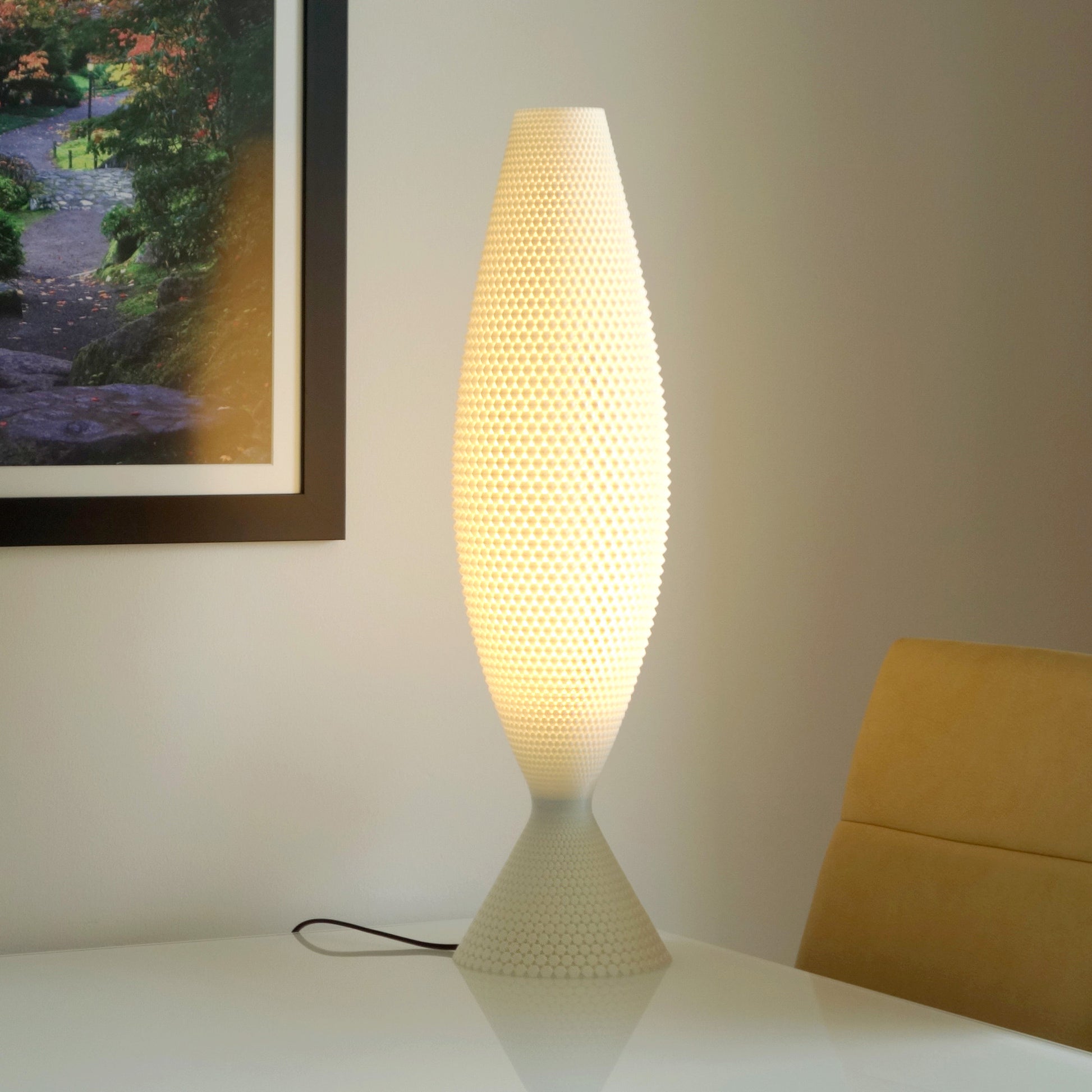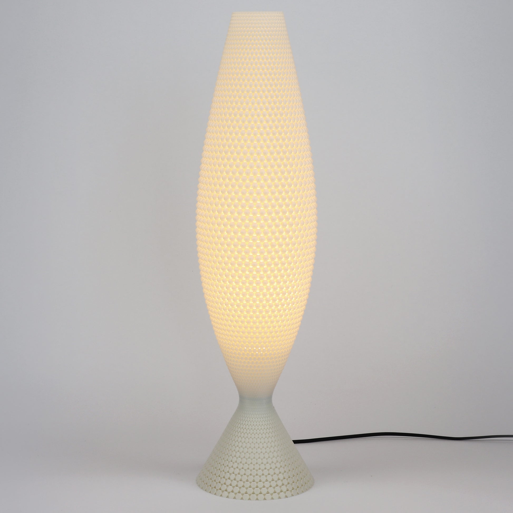 Mit modernen 3D-Druckern wird der Lampenschirm der Designleuchte unter Verwendung eines biobasierten Rohstoffes frei von Erdöl und toxischen Bestandteilen hergestellt. Das innovative Design von smartlamps beinhaltet eine besondere kristalline 3D-Struktur und erschafft eindrucksvolle Licht- und Schattenspiele beim Einschalten des Lichts. Es wird die Verwendung von LED-Strahlern empfohlen für beste Lichtwirkung.