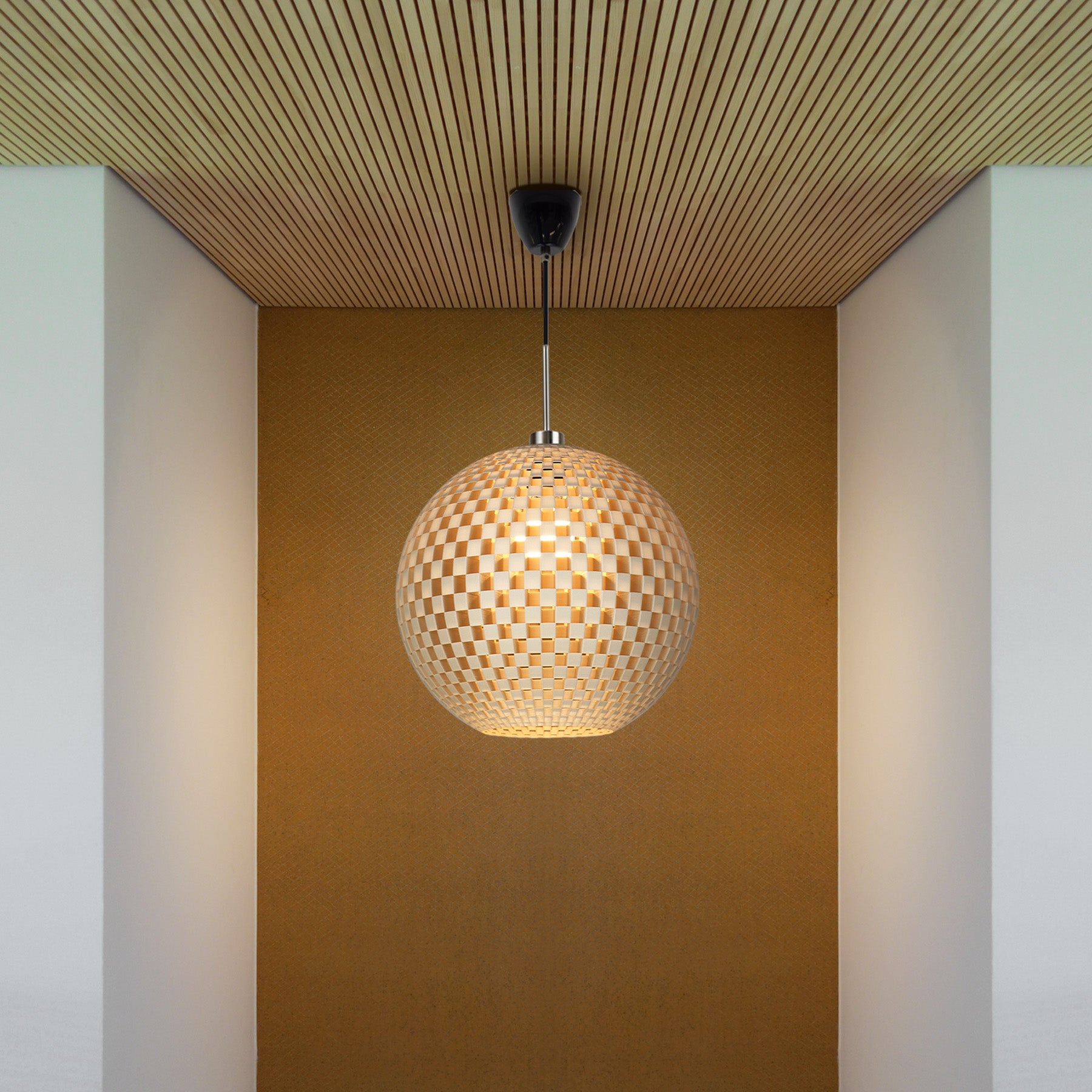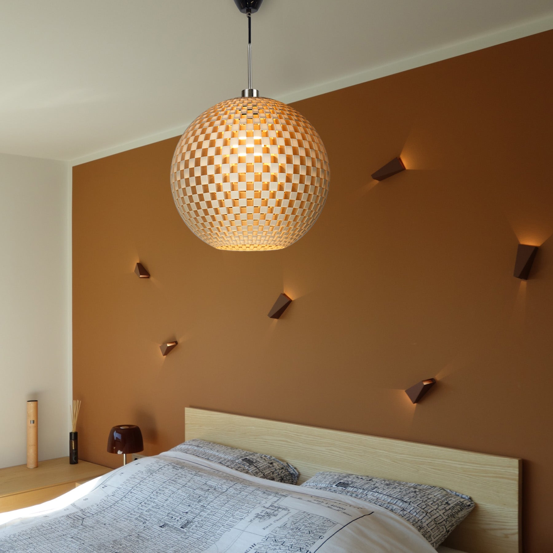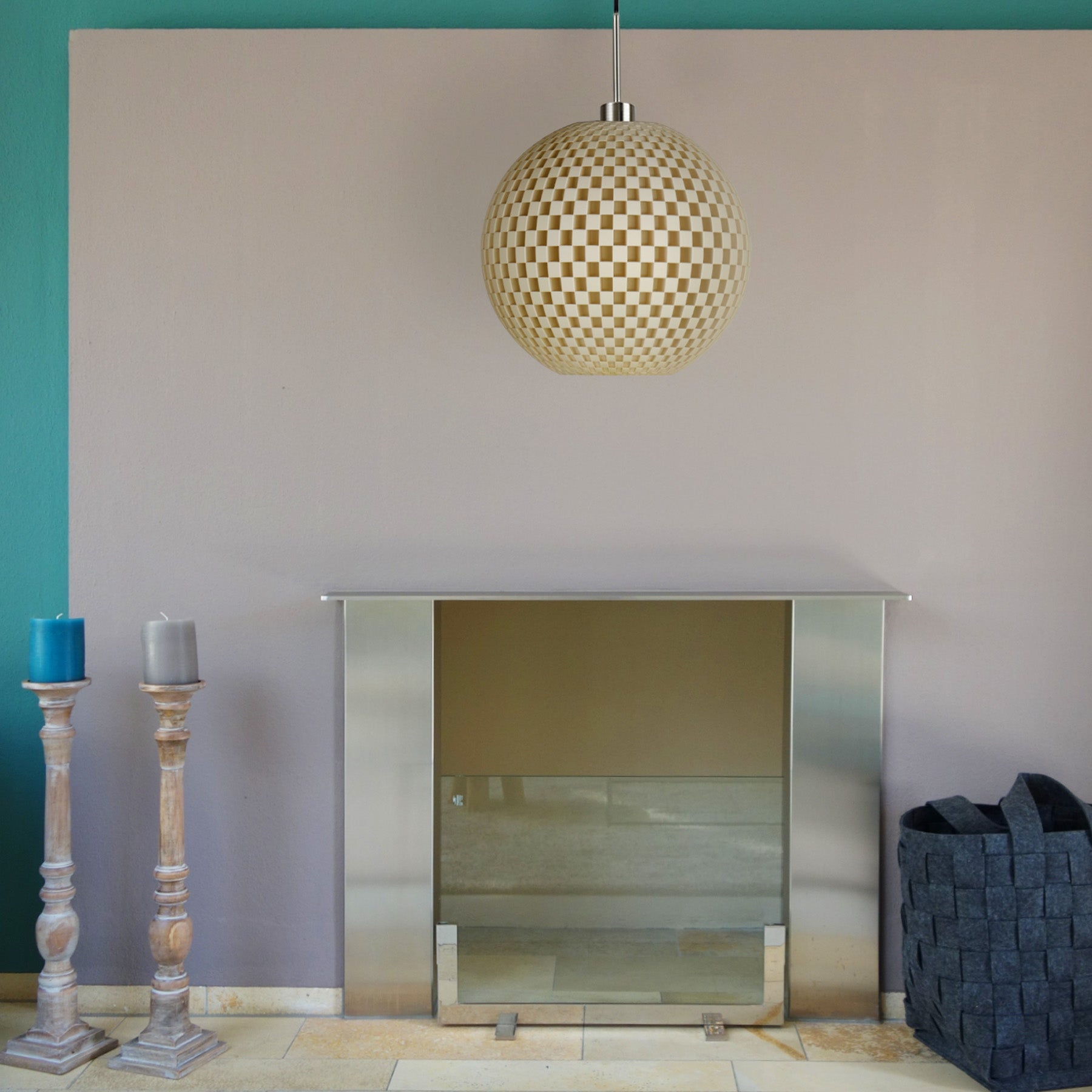 Mit modernen 3D-Druckern wird der Lampenschirm der Designleuchte unter Verwendung eines biobasierten Rohstoffes frei von Erdöl und toxischen Bestandteilen hergestellt. Das innovative Design von smart lamps erinnert dabei an ein Geflecht oder Schachbrettmuster und erschafft eindrucksvolle Licht- und Schattenspiele beim Einschalten des Lichts.