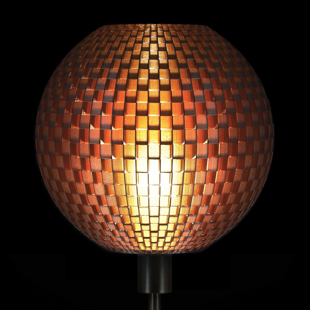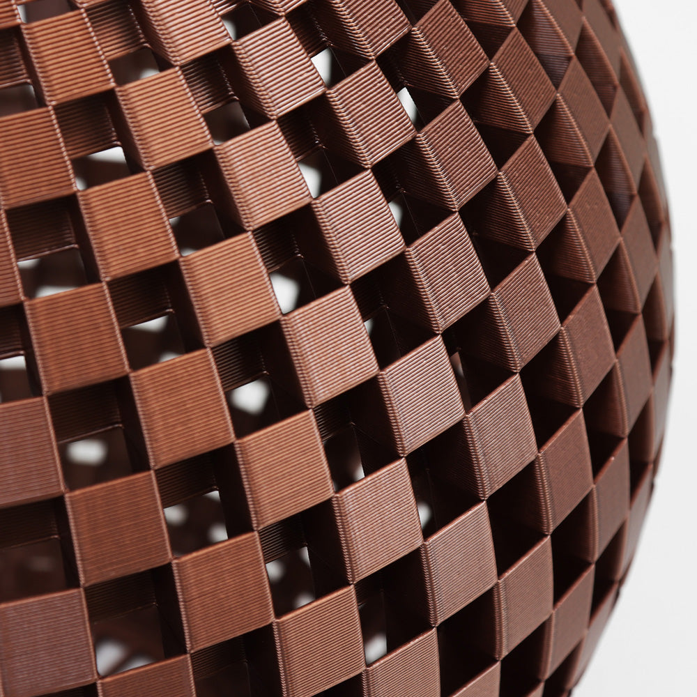 Mit modernen 3D-Druckern wird der Lampenschirm der Designleuchte unter Verwendung eines recycelbaren Rohstoffes frei von Erdöl und toxischen Bestandteilen hergestellt. Das innovative Design von smartlamps erinnert dabei an ein Geflecht oder Schachbrettmuster und erschafft eindrucksvolle Licht- und Schattenspiele beim Einschalten des Lichts.