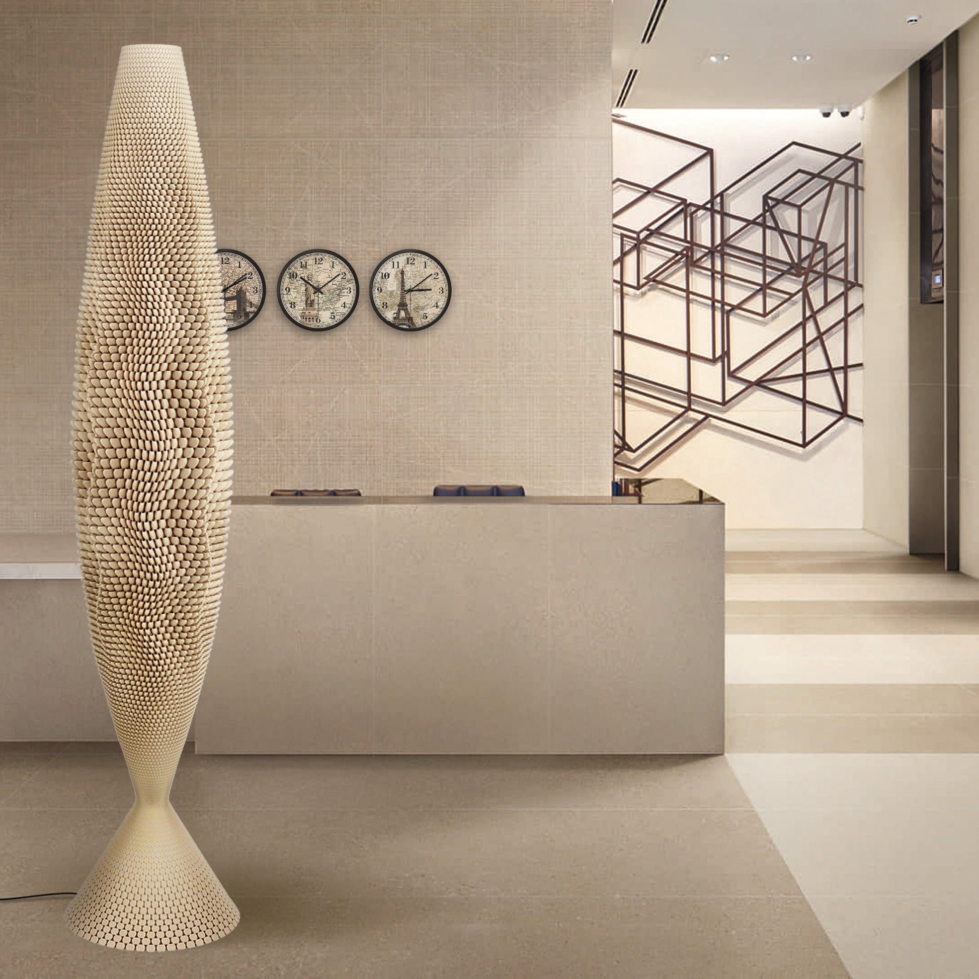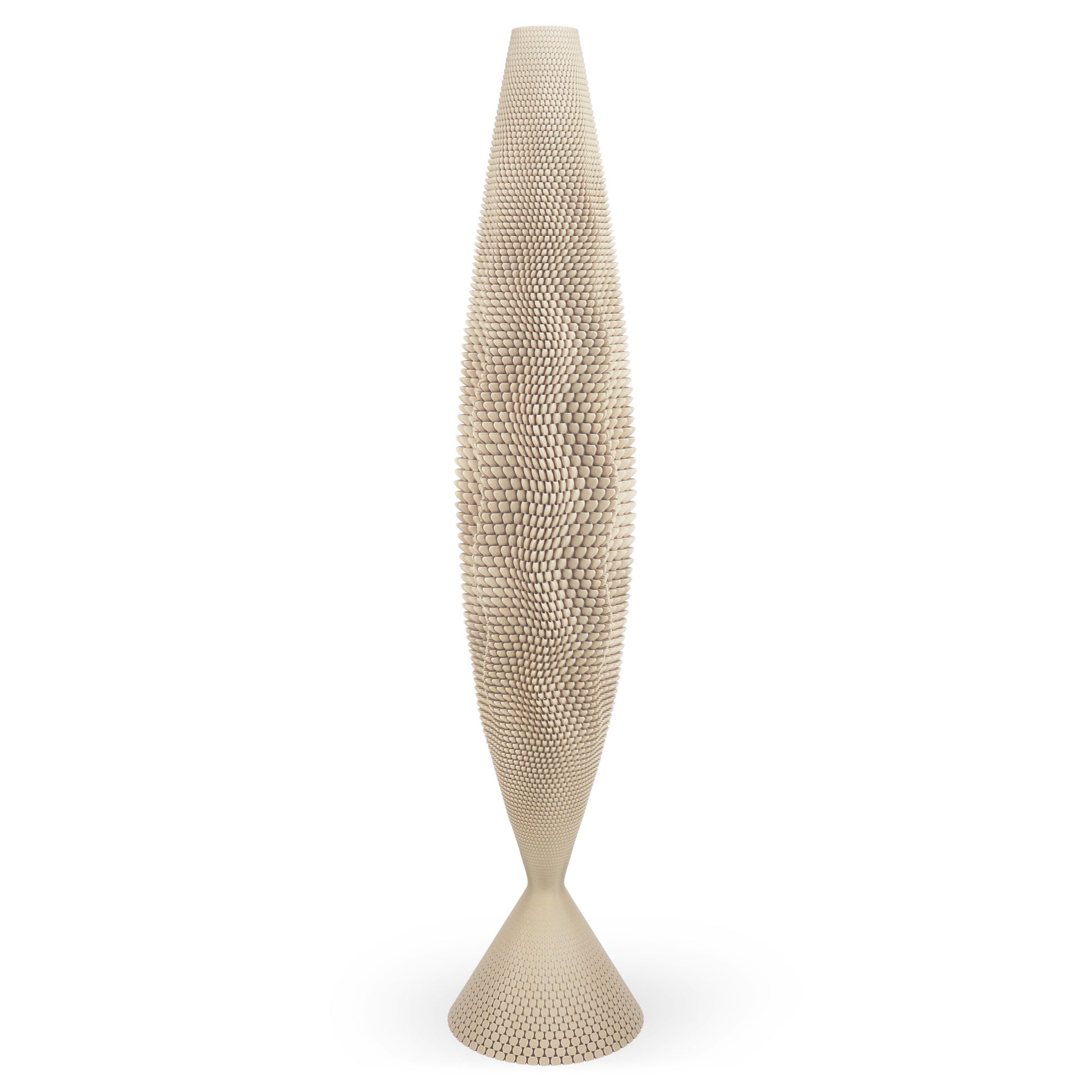 Mit modernen 3D-Druckern wird diese Superskulptur unter Verwendung eines biobasierten Rohstoffes frei von Erdöl und toxischen Bestandteilen hergestellt. Das innovative Design von smart lamps beinhaltet eine besondere biomorphe 3D-Struktur und erschafft eindrucksvolle Licht- und Schattenspiele beim Einschalten des Lichts.