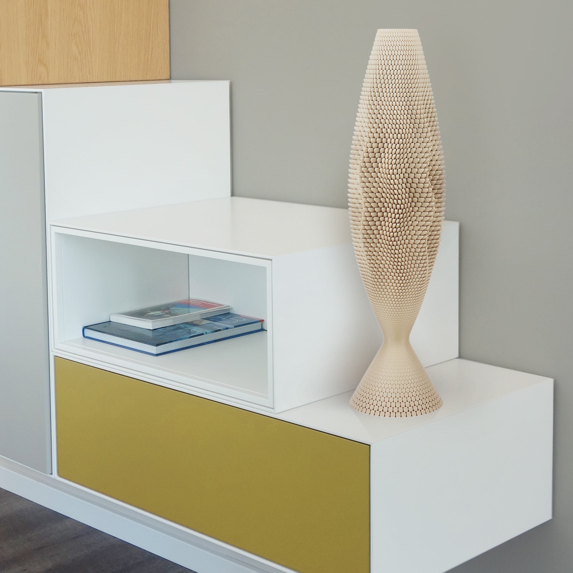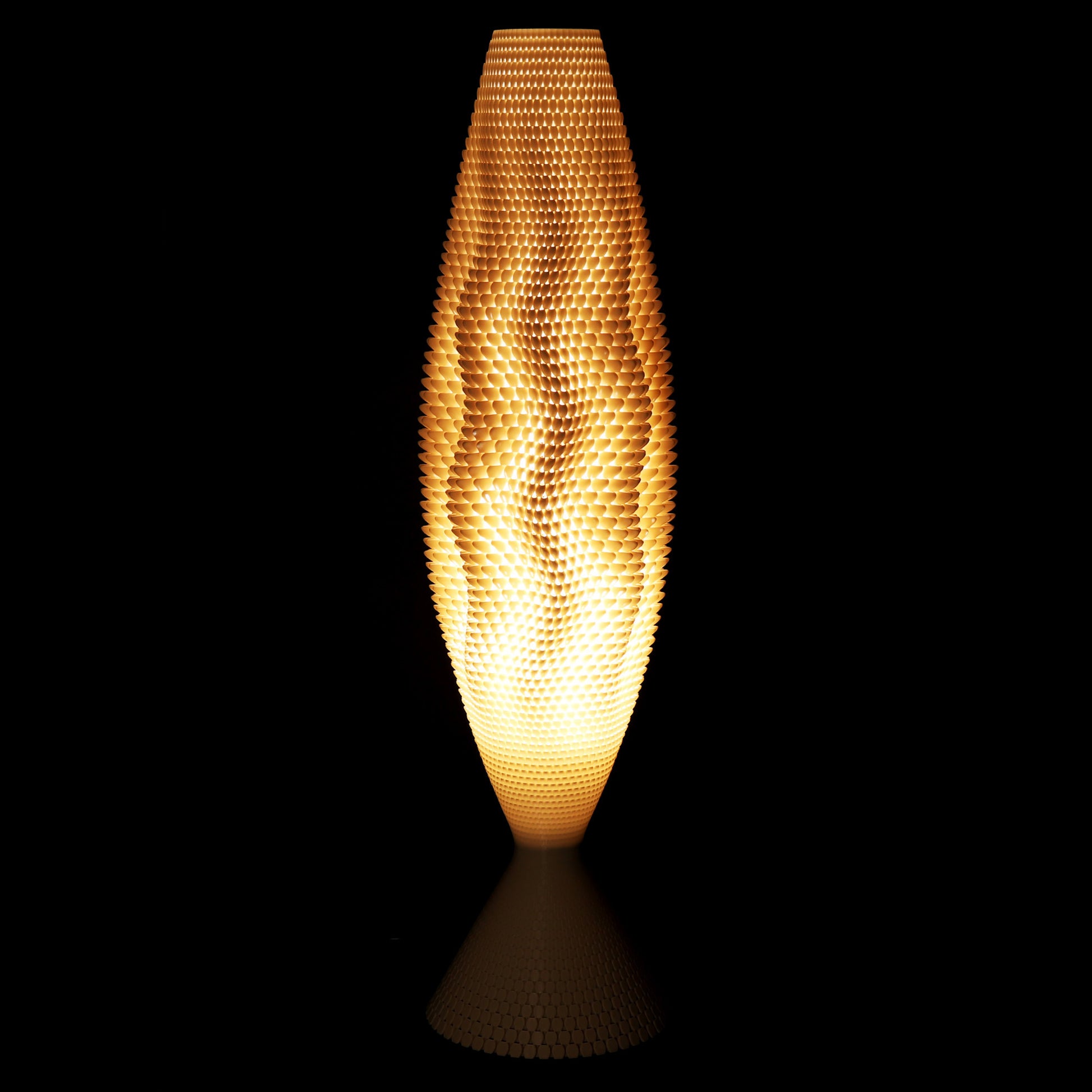 Mit modernen 3D-Druckern wird der Lampenschirm der Designleuchte unter Verwendung eines biobasierten Rohstoffes frei von Erdöl und toxischen Bestandteilen hergestellt. Das innovative Design von smartlamps beinhaltet eine besondere biomorphe 3D-Struktur und erschafft eindrucksvolle Licht- und Schattenspiele beim Einschalten des Lichts. Es wird die Verwendung von LED-Strahlern empfohlen für beste Lichtwirkung.